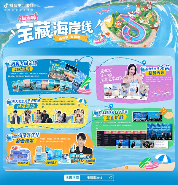 當(dāng)海浪與城市共鳴,當(dāng)流量與體驗(yàn)共振,抖音生活服務(wù)聯(lián)合四省九城打造了一場(chǎng)「寶藏海岸線(xiàn)」文旅盛宴,交出了一份令人矚目的答卷。從政府到商家,從明星到達(dá)人,從線(xiàn)上種草到線(xiàn)下狂歡,這場(chǎng)以“海”為核的超級(jí)IP,不僅激活了海岸經(jīng)濟(jì)的新動(dòng)能,更重新定義了夏季海濱生活的無(wú)限可能。