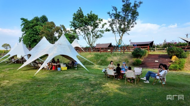 多元體驗讓假日消費延伸出更多維度。秋日艷陽下,孩子們在紅高粱地中盡情高歌;滿天星斗下,非遺傳承人揮舞的鐵花點亮夜空;星空影院前,游人圍坐煮茶觀影;露營基地內(nèi),燒烤的香氣飄滿整個田野……這座融合文化體驗與田園休閑的園區(qū),正成為人們的假日消費的新選擇。園區(qū)負責人陳霞介紹,園區(qū)內(nèi)專門設(shè)計了甲骨文識字、傳統(tǒng)文化研學、高粱采收等親子項目,讓游客在體驗中消費,在消費中感受文化。
