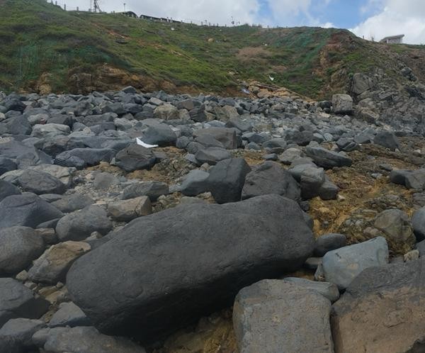 宋子涵前往福建省的平潭島景點(diǎn)“鏡沙”時(shí)穿過(guò)的礁石灘。受訪者供圖