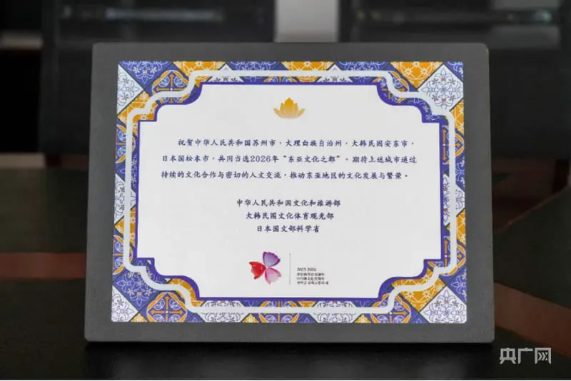 央廣網(wǎng)大理1月7日消息(記者 魏文青)近日,2026年“東亞文化之都”評選結果在北京揭曉,大理白族自治州成功當選,成為云南省首個獲此殊榮的城市,也為云南參與東亞城市文化交流打開新的門戶。
