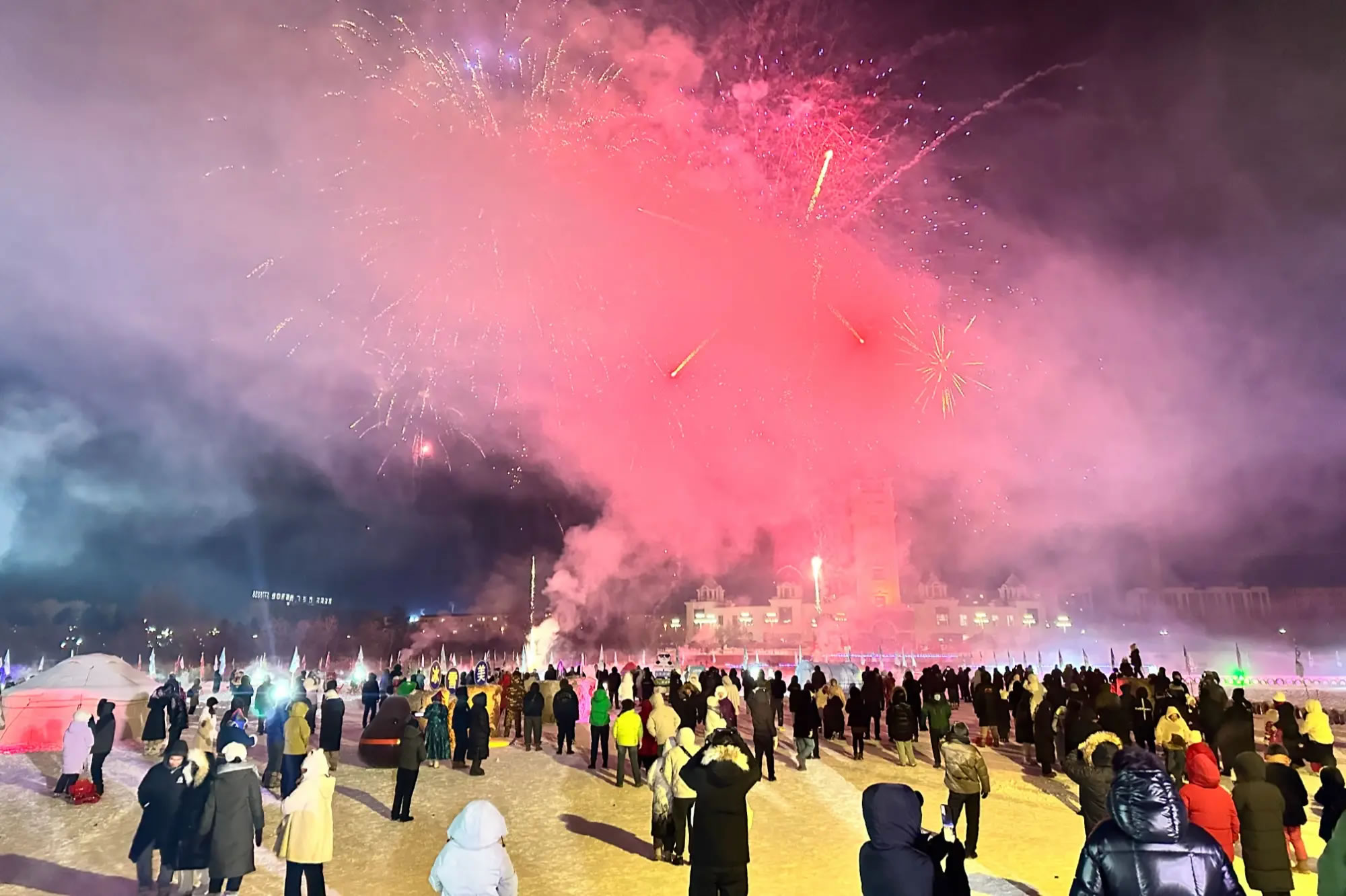 當(dāng)晚,無(wú)人機(jī)表演和煙花秀成為開(kāi)園活動(dòng)的一大亮點(diǎn)。無(wú)人機(jī)在夜空中變換造型,與冰雪景觀交相呼應(yīng),隨后綻放的煙花點(diǎn)亮夜空,將現(xiàn)場(chǎng)氛圍推向高潮,吸引游客駐足觀看、拍照留念。