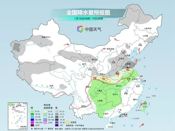 今天,雨雪將繼續(xù)向南大幅擴(kuò)張;明天起,此輪雨雪進(jìn)入鼎盛時段。未來四天,中東部地區(qū)自北向南將先后出現(xiàn)大范圍雨雪天氣過程,秦嶺-淮河以南地區(qū)降水相態(tài)復(fù)雜,有雨雪及凍雨的轉(zhuǎn)換。西北地區(qū)東部、華北中南部、黃淮、江漢、江淮西部、江南北部等地有中到大雪或雨夾雪,其中,陜西南部、河南中南部、湖北西部、湖南北部、安徽西部等地部分地區(qū)有暴雪,河南中南部、湖北西部、湖南、貴州、重慶東北部等地部分地區(qū)有凍雨,西南地區(qū)東部、江南南部、華南西部等地有小雨。