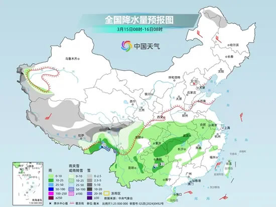后天,北方大部雨雪停歇,南方則維持多雨狀態(tài)。預(yù)計,新疆南疆西部山區(qū)、西藏大部、川西高原等地部分地區(qū)有小到中雪或雨夾雪,其中,新疆南疆西部山區(qū)、西藏東北部、川西高原北部等地局地有大雪;西藏東部、云南西北部和東部、重慶東部、貴州南部、湖北南部、湖南北部、廣西西北部等地部分地區(qū)有中到大雨。