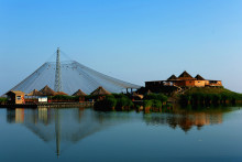 寧夏濕地博物館主要以葦、鳥、水、沙為設計元素,采用“沙丘”主造型,結(jié)合聲、光、電、像等科技技術(shù),將濕地知識、濕地生物、濕地文化、濕地與人類的關(guān)系、科普科研、收藏展覽、演藝娛樂和旅游服務有機結(jié)合的展館。
