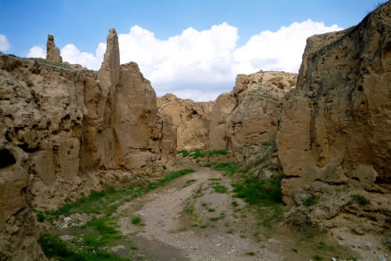 從水洞溝到紅山堡之間,有長(zhǎng)約4公里的峽谷,本是大自然的“杰作”,但明代時(shí),這又成了長(zhǎng)城“深溝高壘”防御體系的重要組成部分。峽谷兩岸經(jīng)常年的風(fēng)雨剝蝕,溝壑縱橫,深厚的黃土經(jīng)長(zhǎng)期的雨水沖刷,土柱突兀壁立,造型奇特,形成了“土林”!巴亮帧庇纸(jīng)大自然鬼斧神工雕琢般地形成千奇百怪的形像。有的像僧人登高遠(yuǎn)眺,似在期待來(lái)者;有的宛如一對(duì)戀人,相親相依;有的如夫妻相敬,雙方對(duì)拜,琳琳總總,各具形態(tài),給人以無(wú)盡的遐想。在峽谷的兩邊的崖壁上有明代將士修建的藏兵洞,它充分顯示了古代人民的軍事智慧和聰明才智。