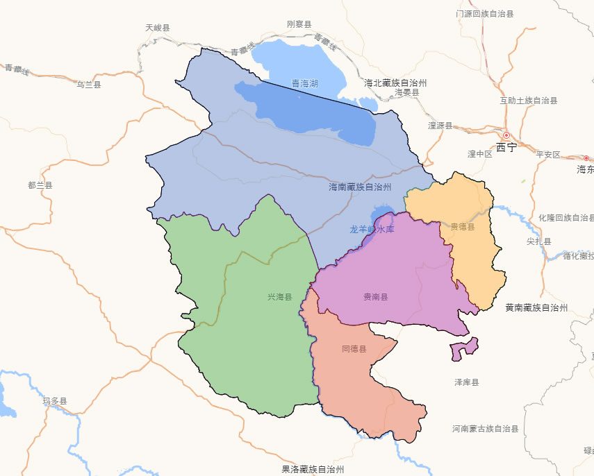 海南藏族自治州轄轄5個縣:
