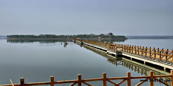 浮龍湖:位于單縣的西南部,距單縣城15公里,它南依凹凸不平的黃河故道,北接一望無際的平原,F(xiàn)屬單縣浮崗鎮(zhèn)管轄。由浮龍湖和月牙潭兩部分組成。浮龍湖呈東西狹長形狀,東西長約1⒉5公里,南北寬⒉5公里,面積3⒈26平方公里,水深約⒊5-5米,月牙潭呈狹長形狀,面積約5平方公里。浮龍湖和月牙潭水面積約 3⒍26公里,占浮崗鎮(zhèn)總面積的 2⒌18%。水質(zhì)純凈無任何污染。有閆潭灌區(qū)南引黃干線,小浪底焦莊水閘兩條送水途徑,長年可保持一定的蓄水量。據(jù)有關(guān)史料記載浮龍湖成型于明朝嘉靖年間的黃河決口,黃河在此決口一瀉千里,沖積成兩個大洼地,隨著黃河的改道和地質(zhì)地貌變動,形成兩個相對獨立的封閉的大潭坑,在當?shù)亓鱾髦犊由畈灰姷字蓖|海龍宮,每逢農(nóng)歷2月22日龍?zhí)ь^時,龍王派其四子來此處察看民情的傳說。
