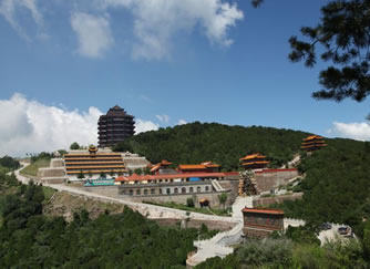 烏金山不僅有豐富的自然景致,而且還有數(shù)不盡的人文景觀。由于烏金山山高林密,氣候宜人,風(fēng)景秀美,靜謐清幽,歷朝歷代多有僧侶入山修行,更有文人墨客、達(dá)官顯貴前來觀瞻,因此便留下了許多人文遺跡。這里是佛教圣地五臺(tái)山的下院,曾被稱為文殊菩薩講經(jīng)的道場(chǎng),于是便形成了以寺廟群落為主的諸多景觀。許多寺廟群都依山而建,金碧輝煌,氣勢(shì)恢弘。這些寺廟群大都分布在千頃碧綠的林海中。遠(yuǎn)遠(yuǎn)望去,就像茫茫綠海中時(shí)隱時(shí)現(xiàn)的海市蜃樓,顯得縹緲奇幻而又雄偉壯觀。