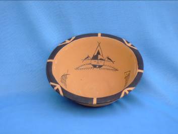 繪畫圖案古樸、簡(jiǎn)練,可分三大類:一類為象生性圖案,如張口作吞食狀的魚、悠閑的鹿、搜索食物的蛙等動(dòng)物紋,還有植物紋。這些象生圖案同史前人類的生活息息相關(guān),形態(tài)生動(dòng)的動(dòng)植物紋樣是農(nóng)耕和漁獵生活的反映。第二類為幾何圖案,有三角形,方格紋、編織紋等,這類圖案多在缽、罐、盆、壺類器皿外璧上部,許多缽類器口緣外側(cè)繪黑色寬帶紋,部分大口淺腹器皿的彩陶?qǐng)D案多繪在內(nèi)壁上,小口器的圖案則繪在口唇和肩腹部,這些部位多是容易看得見(jiàn)的地方,多數(shù)圖案清晰,筆畫疏朗,這些幾何圖案中,三角紋是由魚紋圖案變化而來(lái),波折紋則是山或水的寫意。
