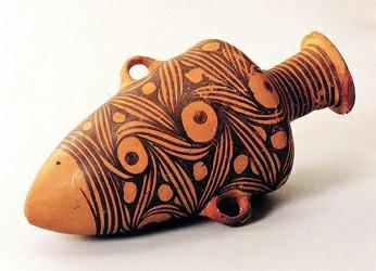從半坡遺址中看到的大量絢麗多彩的陶器,表明這一時(shí)期的文化為彩陶文化。其繪畫作品有的豐富生動(dòng),有的神秘難測(cè),有的則圖案化,多繪在盆、缽、罐、細(xì)頸壺上,繪畫作品多繪在小口器肩,腹和口部,直口器多繪在外壁或口緣外側(cè),大口器多繪于器內(nèi)壁。多見(jiàn)黑彩,還有少量紅彩。