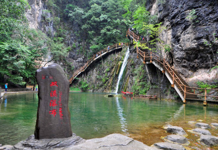 從鎖龍瀑布到丹魚湖廣場是丹江源景區(qū),丹江源景區(qū)主要是以丹江源水體為主的觀光科考游覽區(qū),面積8.O5km。丹江源全長3km。該景區(qū)流水景觀呈階梯狀展布,有十三級瀑布和形狀各異的碧潭以及流量較大的巖溶泉。涓涓溪流匯入丹江,是南水北調(diào)工程中水源地之一。