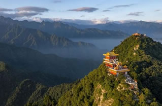 太白山千峰競秀,萬壑藏云。在海拔2000米以上的地方,可看到極其壯觀的云海,以平安寺為最。平安寺地處海拔2700米的山梁上,周圍群峰聳立拱峙,勢若圍屏,山峰間溝壑寬闊,深邃莫測。向南展眸,拔仙臺、跑馬梁、鰲山相連如駝峰顯現(xiàn)。向西北遠眺,桃川河帶狀蛇迥,隱隱可見。站在平安寺,但見云層如海濤洶涌,變幻多端。時而“涌濤掀浪”,不可遏止,時而“風平浪靜”,霧散云匿,時而濃云密霧鋪天蓋地,時而白云輕如鮫綃。朝、夕晴朗之時,云海霞光映金,景色煥然一新。置身云海之中,使人有進入神話傳說的仙境之感。