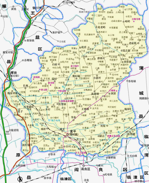 富平縣轄16個(gè)鎮(zhèn)、8個(gè)鄉(xiāng):