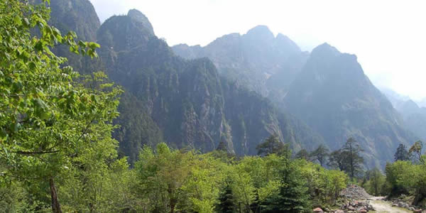 山上的原始森林除了松、杉、樺外,還有珍貴的珙桐、樟和楠木,山上各色野花爭奇斗艷,更有那四季輪流開放的三、四十種杜鵑。從山腳往上,一路景色,變化萬千.山腳溪水潺潺,岸芷汀蘭;山腰花紅柳綠,草木蔥蘢;高山霜葉片片,層林玉樹瓊枝,晶花、夏綠、秋實、冬雪之風(fēng)光于一處,融自然之美景于一山。自道貫通路便可成為一條很好的游山道。