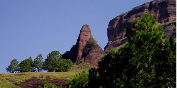 ▲情人堡 洼垮湖灣岸上山脈,其形狀酷似屈膝仰臥我睡美人。摩梭村寨成年兒女,常邀約到山間互表衷情。“哪里去,哪里去,走婚去!情人堡,情人堡,看星星!”——是當地青年中廣為流傳的順口溜。