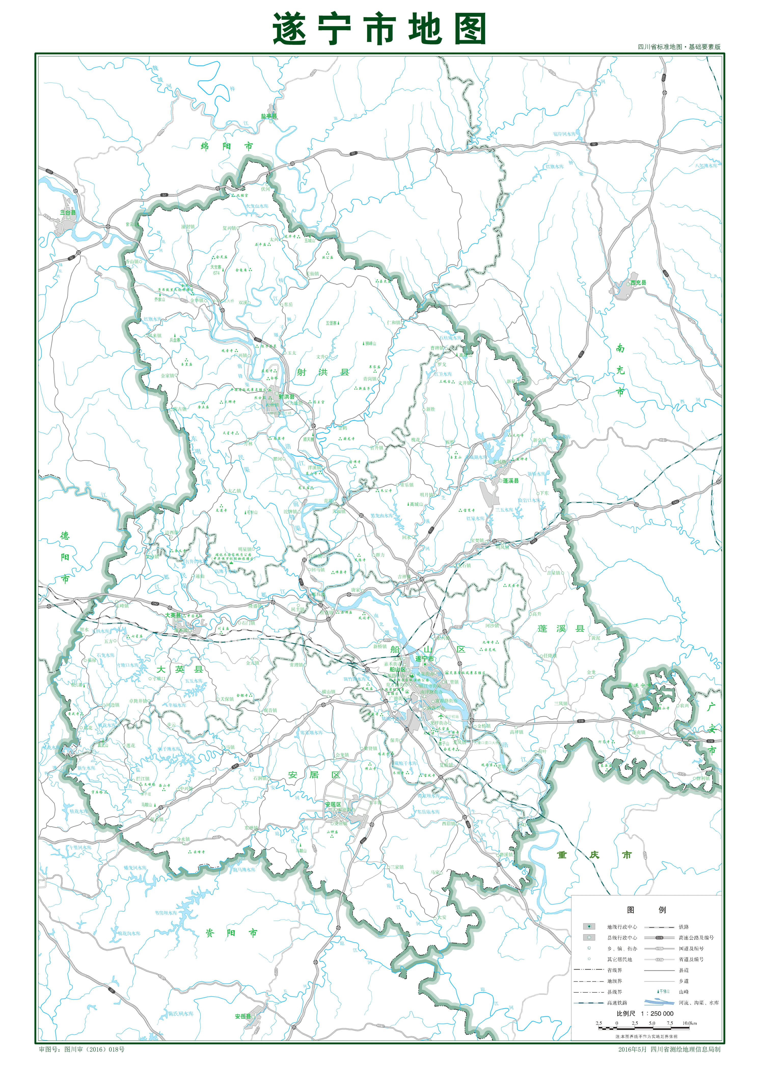 遂寧市轄2個市轄區(qū)、2個縣,代管1個縣級市: