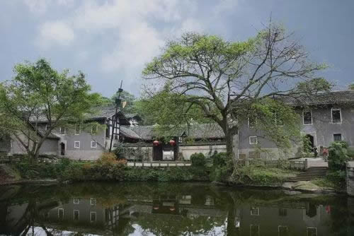 夕佳山民居,客廳門楣上掛著一塊“三鳳聯(lián)飛”的巨匾。據(jù)說,由于黃氏子弟在同一次科考中考取了三名秀才,當(dāng)時的知縣愛才,題贈此匾以示祝賀和獎掖。廳內(nèi),裝飾華麗、陳設(shè)古雅,廳外,樹影婆娑,芙蓉含笑,透露出主人高華清雅的情趣。