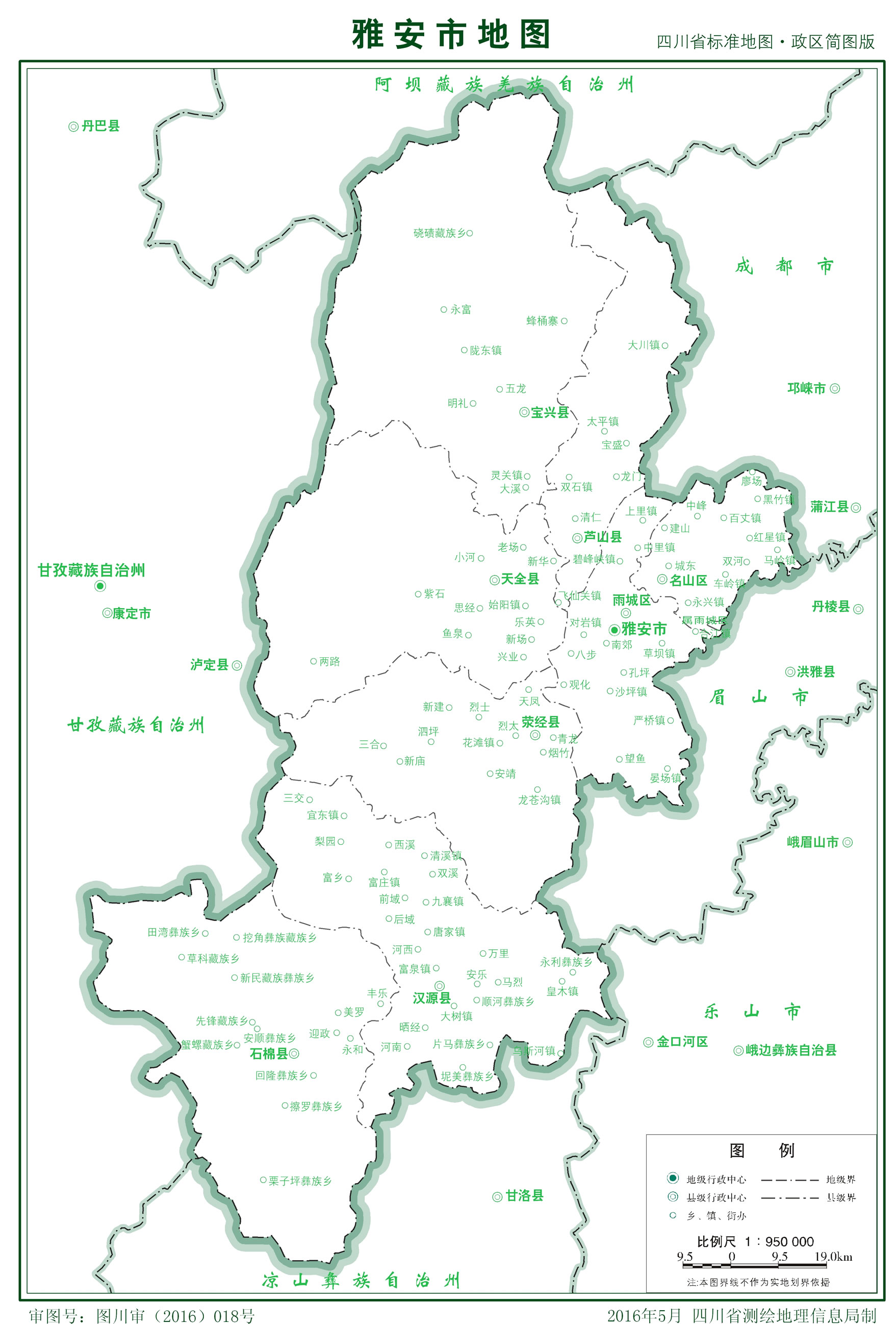 1981年,改稱雅安地區(qū),管轄雨城、名山、滎經(jīng)、漢源、石棉、天全、蘆山、寶興8區(qū)、縣共42個(gè)鎮(zhèn)、106個(gè)鄉(xiāng)(其中18個(gè)民族鄉(xiāng))。