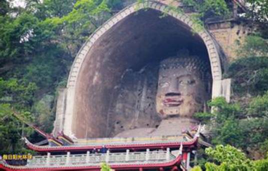榮縣大佛位于四川省榮縣縣城東郊,為唐代所刻,佛像坐南面北,是一尊釋迦牟尼摩崖石刻造像,佛身通高36.67米,頭長8.76米,肩寬12.67米,膝高12米,腳寬3.5米,是世界第一大釋迦牟尼佛(現(xiàn)世佛),第二大石刻大佛。