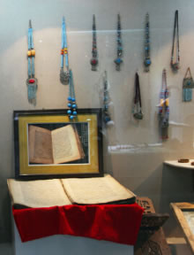 館中展出了在刀郎地區(qū)收集到的部分古老器物、錢幣、文牘、書籍,讓見證了物質(zhì)的刀郎;刀郎人古時(shí)勞作生活的塑像、古老的居室、用具、物品,則使通過時(shí)間的隧道,回到了古老的時(shí)代,與昔日的刀郎人對話。