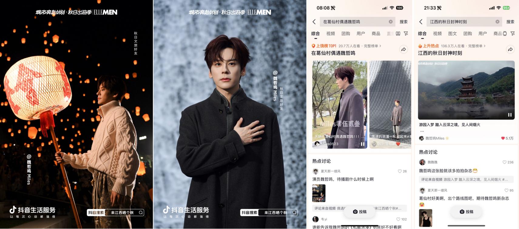 抖音牽手“秋日男友”魏哲鳴前往江西上饒葛仙村拍攝文旅宣發(fā)視頻引發(fā)廣泛關(guān)注,路透內(nèi)容#在葛仙村偶遇魏哲鳴 登上上饒同城榜TOP1;主視頻發(fā)布后,#江西的秋日封神時(shí)刻 更登頂同城榜及全國種草榜TOP6。活動(dòng)還與綜藝《今晚組個(gè)局》實(shí)現(xiàn)聯(lián)動(dòng),吳昕、代露娃、郭俊辰、何洛洛等明星演員前往上饒拍攝定制化文旅內(nèi)容,#上饒葛仙村千燈會(huì)偶遇明星 #何洛洛代露娃上饒葛仙村浪漫赴約 等路透內(nèi)容與節(jié)目看點(diǎn)登頂上饒同城榜TOP1,#組局團(tuán)在上饒千燈會(huì)一起祈愿 搶占同城榜TOP2。明星效應(yīng)有效激發(fā)用戶出行意愿,葛仙村交易額同比403%顯著增長,持續(xù)引爆目的地&商家出圈。