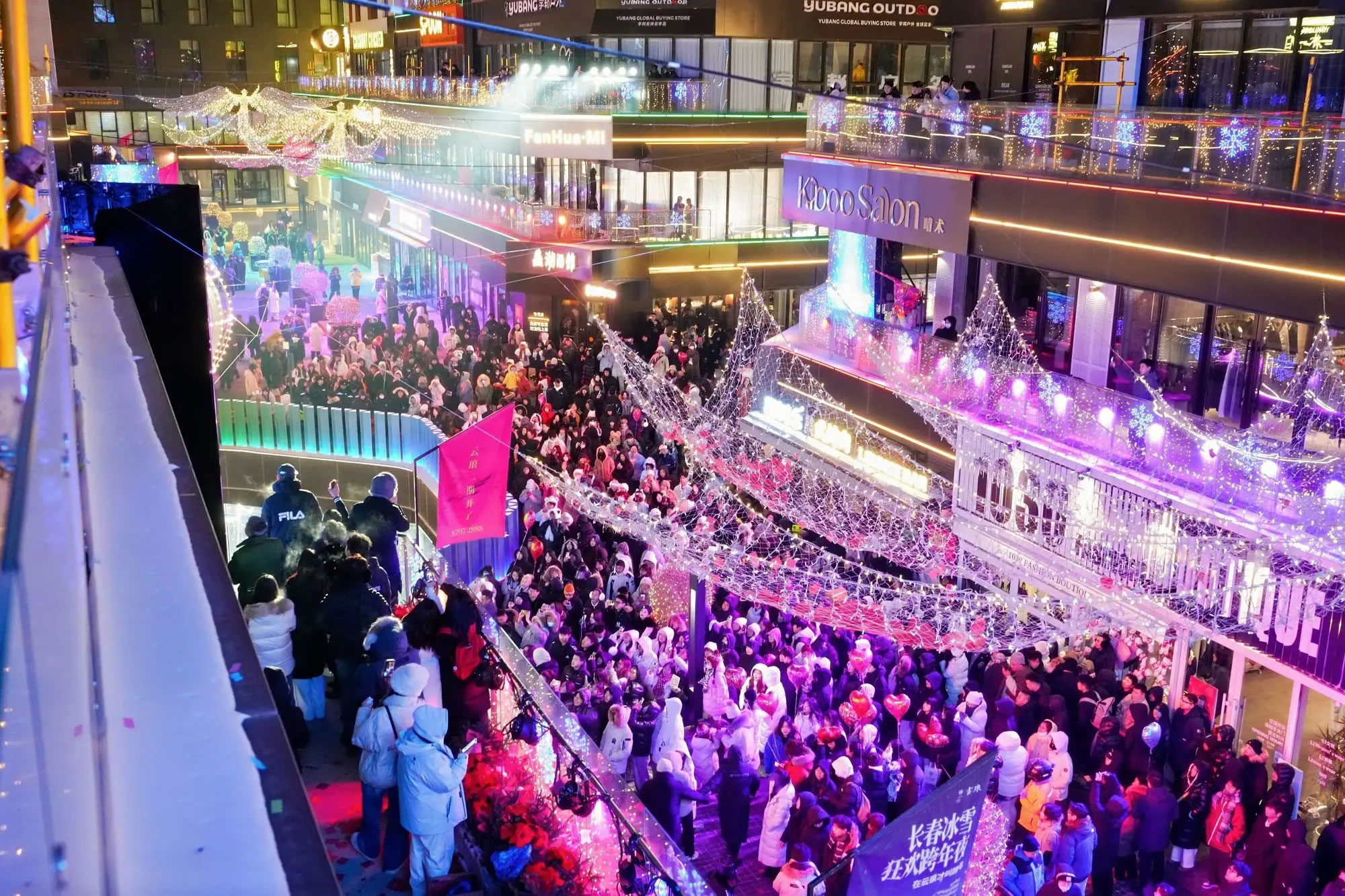 跨年夜當(dāng)晚,伴隨云瑯冰雪公園亮燈儀式,80萬(wàn)米流光燈帶在街區(qū)內(nèi)次第點(diǎn)亮,編織出一張貫穿冬夜的光影網(wǎng)絡(luò),打破北方冬季單一的“白色敘事”。青怡坊云瑯籌備了“天幕表白計(jì)劃”、露臺(tái)音樂(lè)“云瑯紅人之夜派對(duì)”匯聚青年文化力量,為街區(qū)注入更具當(dāng)代氣質(zhì)的社交活力。與此同時(shí),邀請(qǐng)百萬(wàn)級(jí)施坦威鋼琴演奏會(huì)在街區(qū)空間持續(xù)進(jìn)行,以克制而純粹的音樂(lè)形式,為跨年夜提供一條綿延而持久的時(shí)間線索。