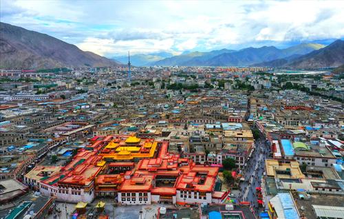 大昭寺,又名“祖拉康”、“覺康”(藏語意為佛殿),位于拉薩老城區(qū)中心,是一座藏傳佛教寺院,是藏王松贊干布建造,拉薩之所以有“圣地”之譽,與這座佛像有關(guān)。寺廟最初稱“惹薩”,后來惹薩又成為這座城市的名稱,并演化成當(dāng)下的“拉薩”。大昭寺建成后,經(jīng)過元、明、清歷朝屢加修改擴(kuò)建,才形成了現(xiàn)今的規(guī)模。