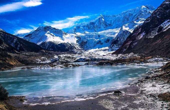 該冰川常年雪光閃耀,景色神奇迷人。米堆冰川位于北緯29°,但冰川末端卻比北緯近44°的天山博格多山的冰川還要低,這是我國現(xiàn)代冰川中較為特殊的現(xiàn)象,與喜瑪拉雅山東南段的氣候有著密切的關(guān)系。