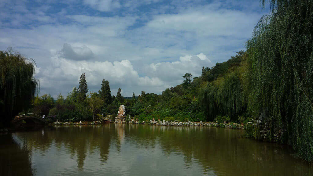 白邑黑龍?zhí)叮挥卺悦骺h白邑鄉(xiāng)龍?zhí)稜I村南,旁修黑龍?zhí)端。始建于明代。存正殿三間,南北廂房各五間,南北配殿各三間,戲臺一座,財神廟一座。正殿前有一塊光緒皇帝題寫的匾額,上書“盤江昭佑”四個大字,右題:“欽命太子太保兵部尚書云貴總督部堂白山伊里布吉旦”,左邊落款是“大清光緒十三年季春月下浣日吉旦”,中有一璽。“光緒御筆之寶”。白邑黑龍?zhí)度劬驮趶R中的龍?zhí)。潭分南北兩潭,北潭泉盛,注入南潭,潭底望去,呈青黑色,故名黑龍(zhí)。水從潭中涌出,形成小河,向南注入松花壩水庫?/p>