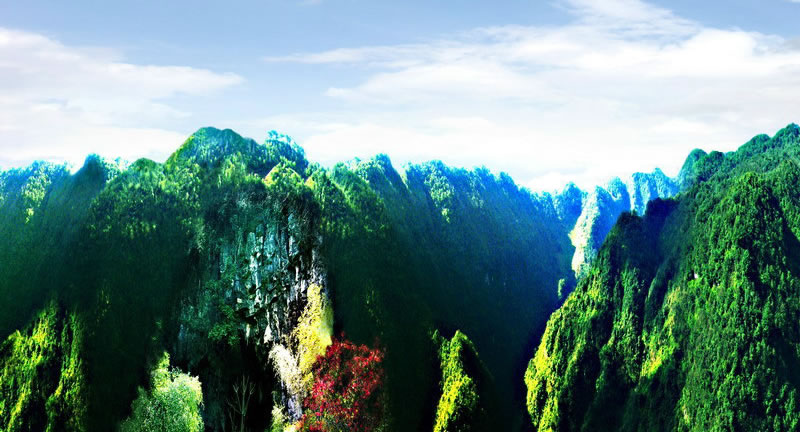 地形地貌 富源縣地貌為中山山地,突出的峽谷地貌,其特征為河流縱向切割、山川南北展布、地形破碎、山高谷深、坡陡流急、巖溶發(fā)達(dá)、河谷階地狹窄,耕地零星分散。烏蒙山支脈自北向南縱貫全境,南北長(zhǎng)約103千米,東西寬約54千米,兩頭寬、中間窄,呈薯形相銜狹長(zhǎng)地形。全境地勢(shì)北高南低,由西北向東南略有傾斜。境內(nèi)最高海拔為西北部的營(yíng)盤(pán)山,海拔2748.9米,最低海拔為東南部的特土峽谷,海拔1110米。