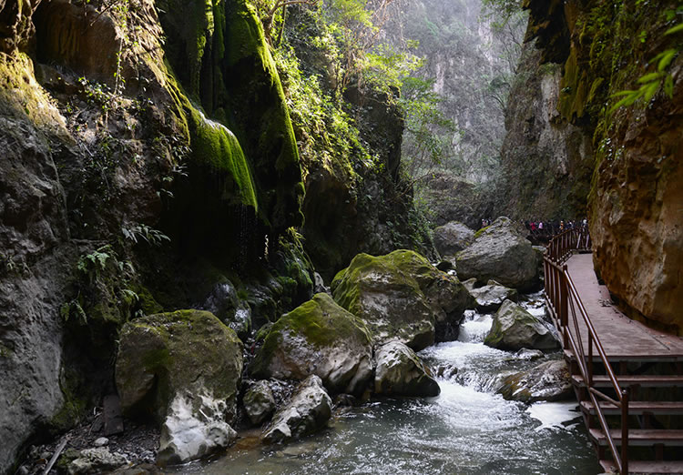 大地縫旅游景區(qū)位于縣城東南60千米的雨碌鄉(xiāng)。入口處稱(chēng)“生命之門(mén)”。洞內(nèi)頂部呈弧形,有上億年巖漿形成的道道褶皺,當(dāng)?shù)厝朔Q(chēng)“天花板”,長(zhǎng)約20余米。過(guò)了天花板,但見(jiàn)青天一線,在綿延曲折的10余千米地縫中,兩山最窄處僅1.6米,最寬處不過(guò)20余米。