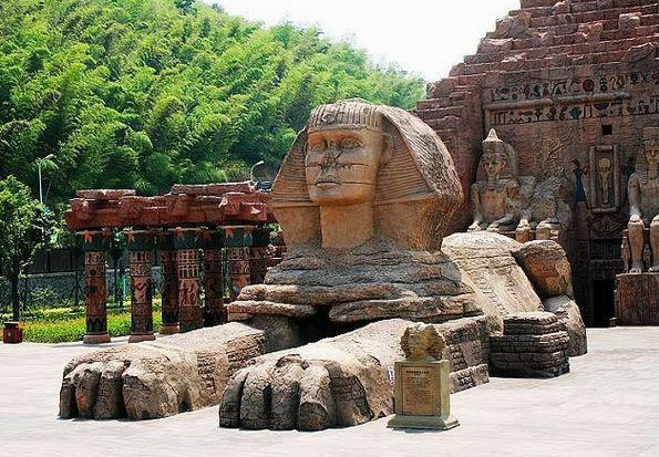 漫漫黃沙中,那宏偉的建筑,依稀就是魂?duì)繅衾@已久的胡夫大金字塔和守護(hù)它數(shù)千年的獅身人面像;燥熱暖風(fēng)里,法老們古老的咒語,斷斷續(xù)續(xù)飄來,召喚著我們不由自主的向前,渴望一探究竟。坐上埃及的太陽船,穿過金字塔黑暗的甬道,危險的鬼屋,劈波斬浪的剎那,才發(fā)現(xiàn)早已沉醉在古埃及異度時空的迷夢中。