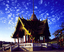 樂園夾道兩邊的仿古建筑已基本完工,顯得色彩斑斕氣度不凡,網(wǎng)球場也已鋪好6片,水上高爾夫練習場已可讓游人揮桿。最為顯眼的是,一艘仿古的巨型帆船已然下水,整條船已被布置成一個水上娛樂的場所,外觀色彩鮮艷,船上旗幡招展,頗成氣候,加上水面上來來往往的各種船只,確乎有些域外海濱的氣象。另外,各種娛樂設施也新增不少,不光是陸上,水中也有不少讓人心動的活動。最令人興奮的是空中,飛機、氣球不一而足,大大增加了游客的參與機會。這里我們將樂園新增游樂項目大致介紹一下,讓游人前往時有個先期挑選的可能。