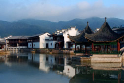 “桃花源”景系集中了從江南各地拆遷的明清古民居異地重建而成,已被命名為“中國文物保護(hù)基金會(huì)示范基地”和“中國古民居保護(hù)基地”。粉墻黛瓦、磚石木雕、斗拱琴坊是無數(shù)工藝大師的心血結(jié)晶;戲院祠堂、府第民宅、屯溪老街是千年歷史文化的民俗畫卷。這里有東陽木雕館、徐氏精品館等十多個(gè)展館,具有較強(qiáng)的觀賞性和知識性。