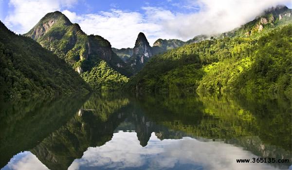 九灣仙峽:于1999年被評(píng)為國(guó)家A級(jí)旅游區(qū)及縣級(jí)風(fēng)景名勝區(qū),距縣城約45公里,九灣仙峽是典型的水蝕峽谷。呈“V”字形,峽谷景區(qū)全長(zhǎng)8公里,總面積約5.3平方公里。峽谷主要以石、洞、潭、瀑、壁最為著名。景區(qū)中天然池潭百個(gè)以上,其中深4-5米,2000多平方米以上有3個(gè),深1-3米,面積30多平方米的不計(jì)其數(shù),具有“天然泳游池”、“天然河床”等之稱。潭的周圍奇石形狀多樣,如鱷魚石、石凳、石房子等。其中最為奇特的景觀是“風(fēng)動(dòng)石”、天門峽、天然河床。風(fēng)動(dòng)石位于山的最高處,石高約2米高,橢圓形,約5噸重,人用手可以搖動(dòng),但永遠(yuǎn)不會(huì)掉下。天門峽高約7米,寬50厘米,沿著石碑進(jìn)入,轉(zhuǎn)彎處寬約30厘米,往前走是可容納10余人的天然洞穴,上面還有三塊石頭組成的“三柱鼎立”景觀。天然河床位于九彎仙峽最底部,全長(zhǎng)約10000米,平均寬度約70米,水由西向東流。峽谷河床由兩個(gè)天然巖壁組成,巖壁光滑,中間略凹,上下巖壁高度相差約1.5米。上級(jí)巖壁而積約1000平方米,中間略凹,有積水,最深處約0.5米,像天然盤子。水隨著巖壁往下流,猶如天然滑梯,巖壁高約1.5米,寬1米,坡度約45度,巖壁光滑。下級(jí)巖壁面積約2000平方米,中間略凹,最深處約1米,中間積水。峽谷內(nèi)溪水水質(zhì)清澈,達(dá)到國(guó)家一級(jí)飲用水標(biāo)準(zhǔn)。