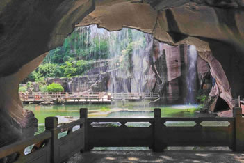 遍布島上的奇洞深穴,神秘詭異,令人驚嘆,石自天生,洞由人掘,天之工巧,人之靈性,成就了千洞之美:大洞小洞、橫洞豎洞、水洞旱洞、閉洞窄洞、彎洞直洞,洞中套洞,洞內(nèi)有水,水中藏洞。洞為佛寺,佛寺即洞。真可謂洞洞為景,水水生色。洞內(nèi)雨絕而清泉不絕,云絕而輕霧不絕。溽暑蒸蒸而清涼之氣不絕,寒冬凜凜而溫馨之息不絕。